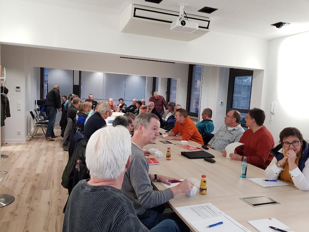 Am Donnerstag, den 07.02.2019, fand der nunmehr fünfte Transfertreff der IG Metall Mannheim für die ehemaligen Beschäftigten von GE Power in Mannheim-Käfertal statt. Die gut besuchte Veranstaltung wurde begleitet von Volker Dengler, Rechtssekretär der IG Metall Mannheim, sowie Arno Schumacher und Kolleginnen der mypegasus-Transfergesellschaft, die den Teilnehmerinnen und Teilnehmern für alle Fragen zur Verfügung standen.